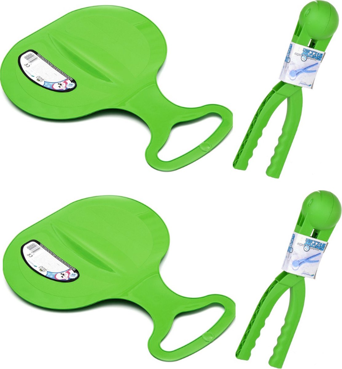 2 Groene Pannenkoeksleen met gratis sneeuwbalmakers – Slee – Glijmat – Winterspeelgoed – Sneeuwballen – ijspret – Sneeuwspeelgoed