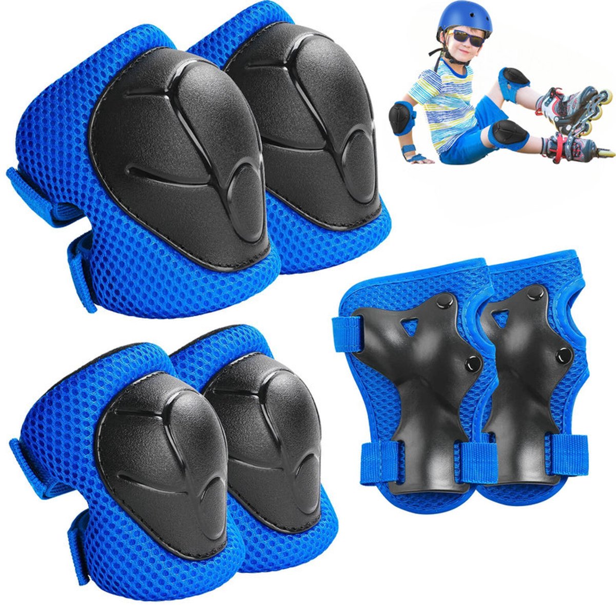 6 stuks – Beschermende uitrusting voor kinderen op skateboards – Kniebeschermers voor fietsen – Beschermende uitrusting voor inline skaten – Beschermende uitrustingssets voor kinderen op rolschaatsen – Beschermende uitrustingssets voor kinderen