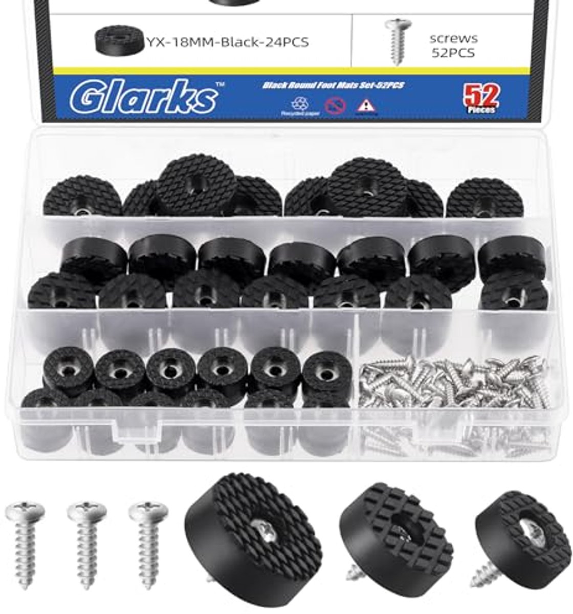 Deze set van 52 antislip rubberen meubelpads bevat verschillende maten (18 mm, 24 mm, 30 mm) en biedt optimale bescherming voor je vloeren. De sterke en duurzame rubberen pads zijn perfect voor verschillende soorten meubels, van stoelen tot tafels, en zijn eenvoudig te installeren met de bijgeleverde schroeven. Dankzij het innovatieve ontwerp verhogen de pads de wrijving, waardoor ze stevig op hun plaats blijven. Geschikt voor gebruik op harde vloeren, maar niet op tapijten. Alle benodigde materialen zijn inbegrepen in de handige opbergdoos.