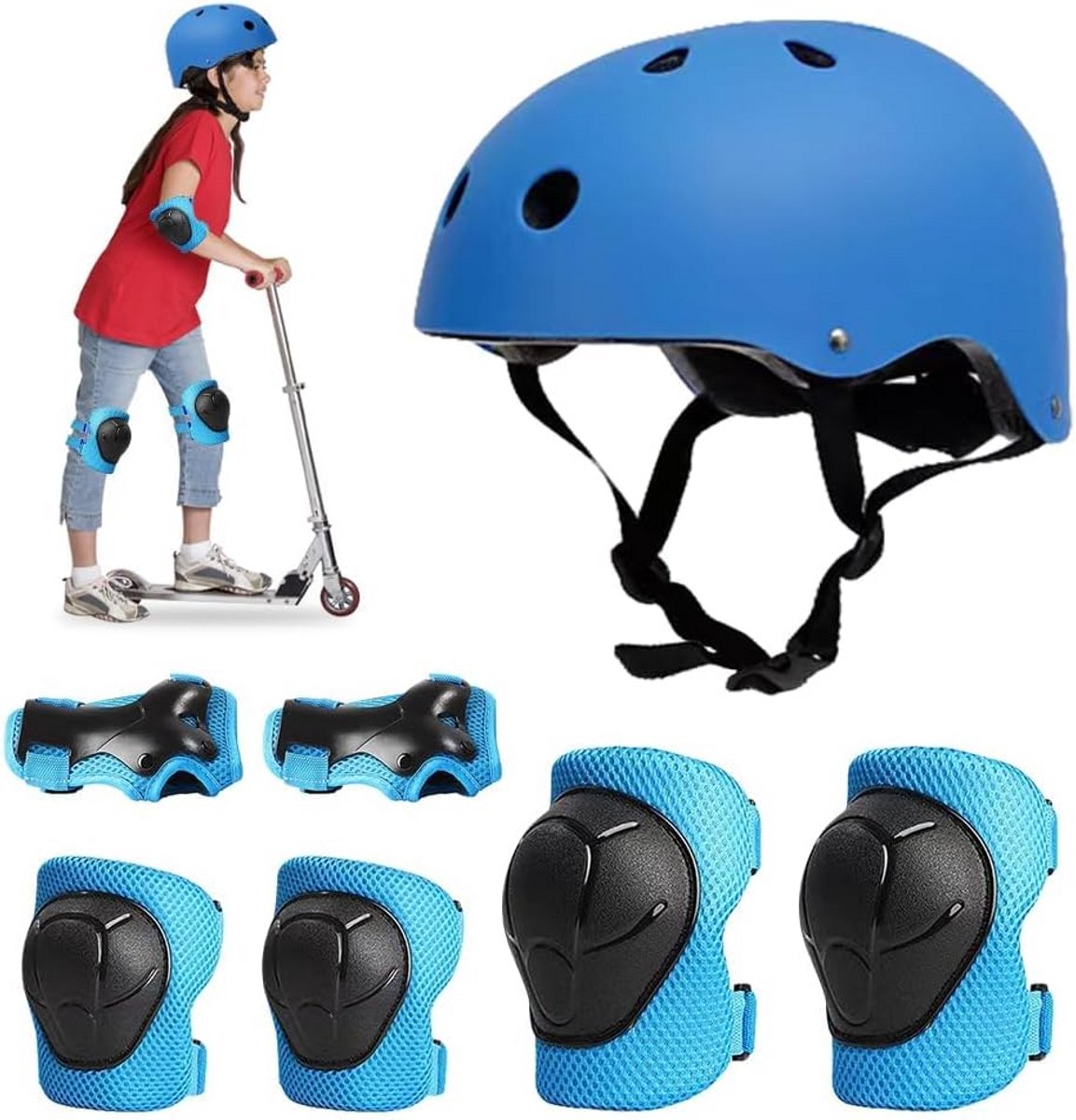 Complete 7-in-1 beschermingsset speciaal ontworpen voor kinderen. Deze set biedt uitstekende bescherming met een schok- en slagvaste helm. Ideaal voor diverse activiteiten zoals skateboarden, longboarden, stuntscooteren, fietsen en rolschaatsen. Zorgt voor veilige en zorgeloze avonturen.
