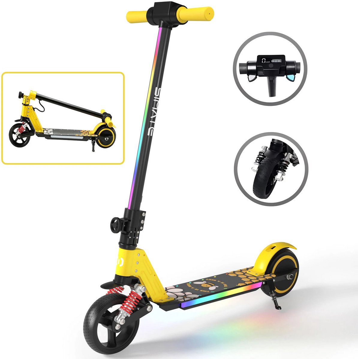 Kinder Elektrische Step 6-12 jaar | Opvouwbaar met Dubbele Veerdempers, 130W Motor, 14 km/u, LED-Display & Kleurverlichting