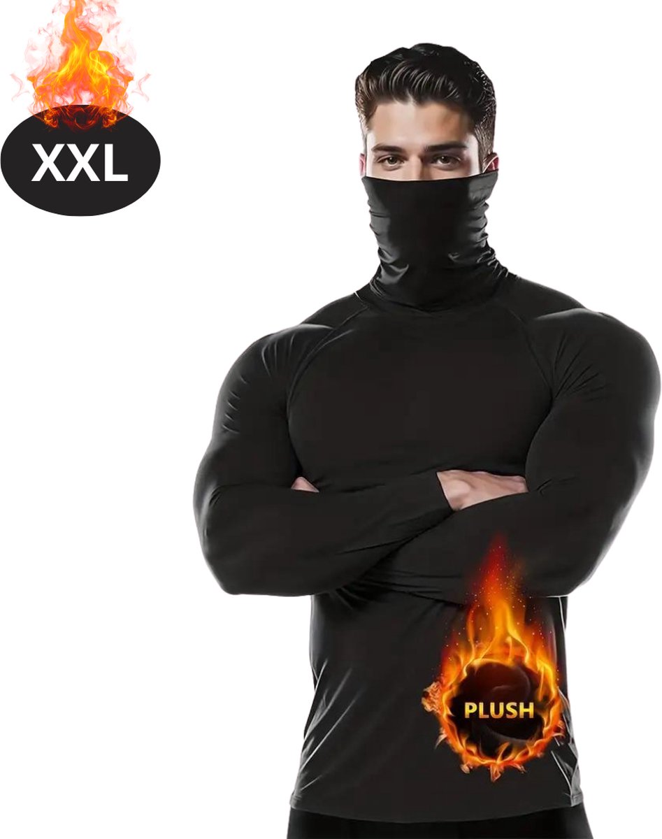 Livano Thermokleding Heren – Thermoshirt – Gezichtsverwarming – Nekverwarming – Winter – Lange Mouwen – Zwart – XXL