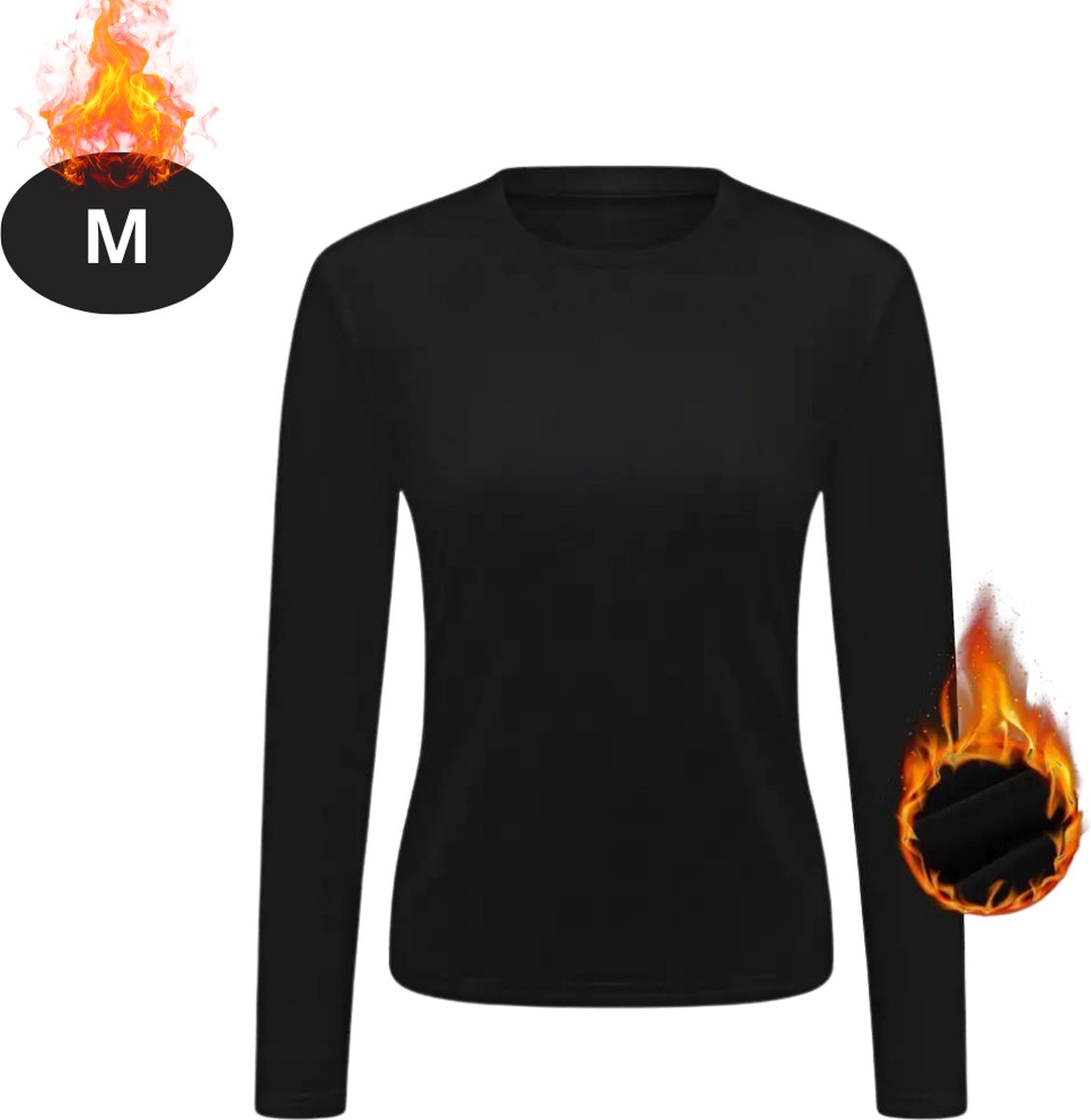 Thermoshirt lange mouw- Vrouwen thermokleding- Warme wintershirt- Dames tehrmishshirt met ronde hals- Zwart- Maat L