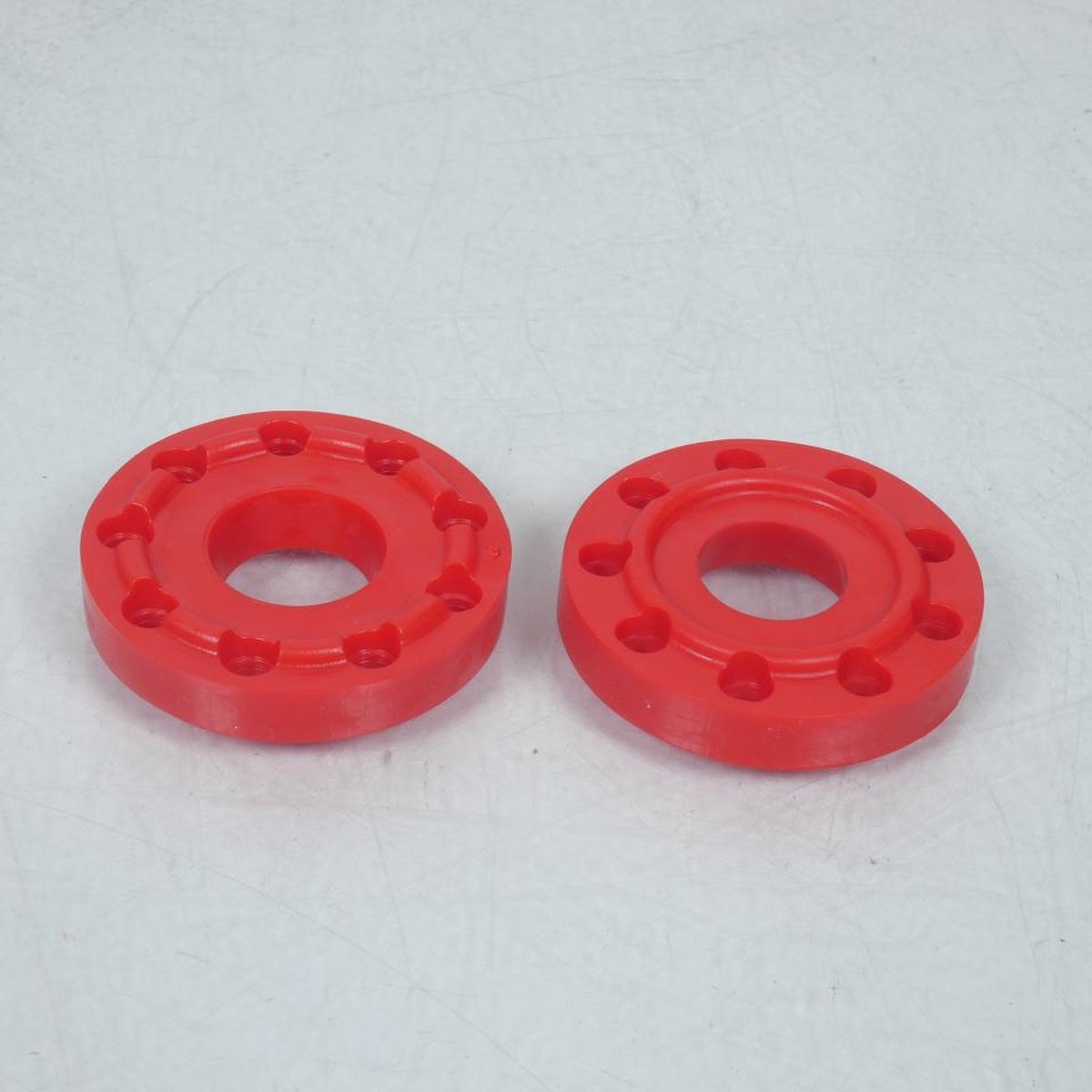 Paire d’inserts de remplacement Ø50mm de tampons pare carter neufs de marque LIGHTECH en plastique de coloris rouge.