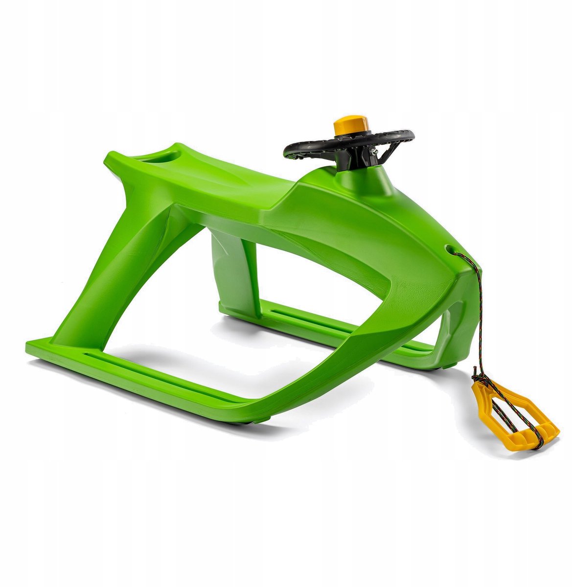 Ervaar optimaal winterplezier met de Prosperplast F1 slee in een levendige groene kleur. Deze comfortabele slee is ontworpen voor eindeloos speelplezier op besneeuwde hellingen. Het ergonomisch gevormde zitje zorgt voor een comfortabele rit, terwijl het stuur fungeert als een veilige handgreep tijdens snelle afdalingen. De lichte, maar robuuste kunststof constructie is bestand tegen lage temperaturen en de metalen glijders garanderen een soepele rit over de sneeuw. Inclusief een handige treklijn met handvat voor eenvoudig transport.