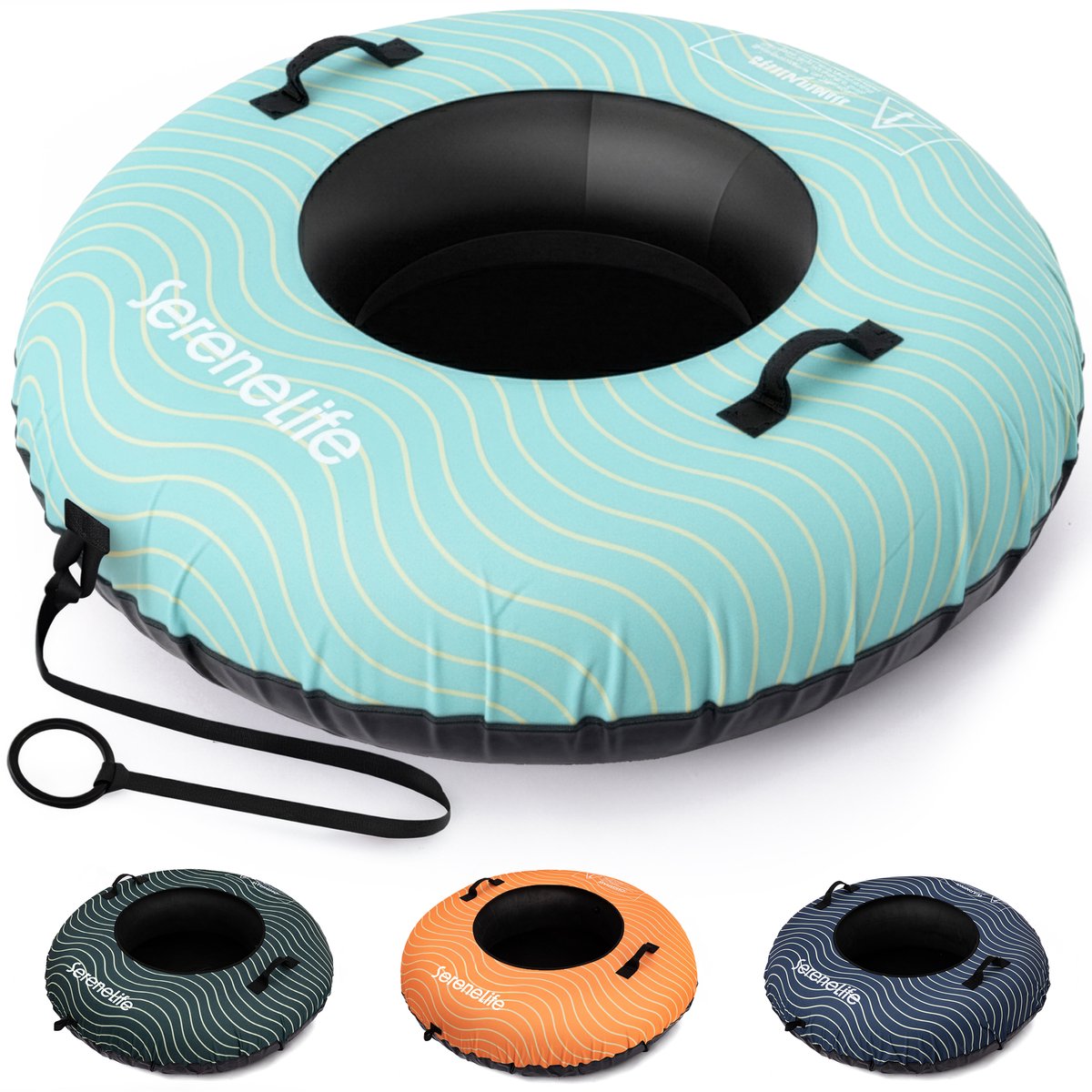 SereneLife Opblaasbare Sneeuw Slee – 122 cm Snow Tube Sneeuwband – PVC Bodem – Rubberen Binnenband – Met Handvaten en Trekriem – Licht Blauw