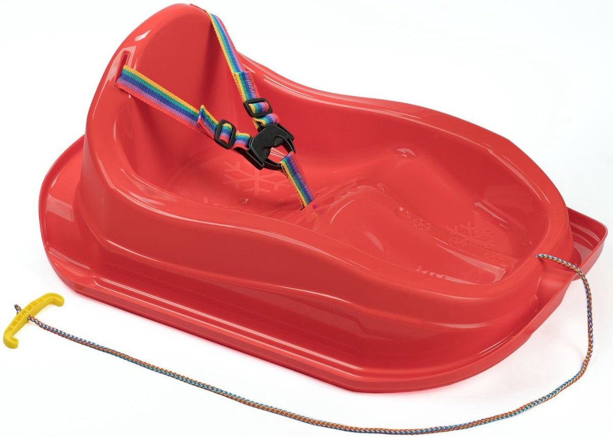 Slee met rugleuning en gordel – Plastic slee baby / peuter – Rood