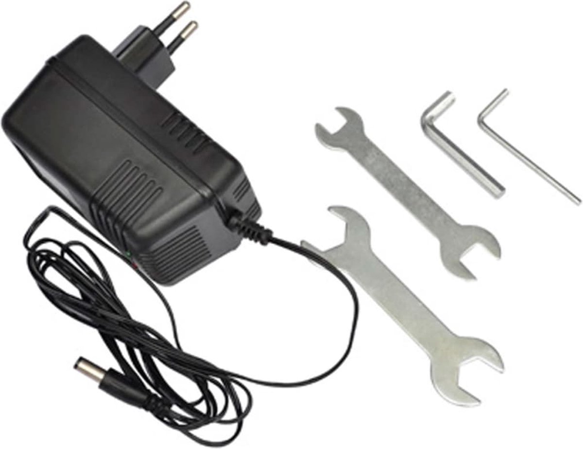 De levering bevat 1 x step, 1 x oplader, montagematerialen en reservezekeringen.