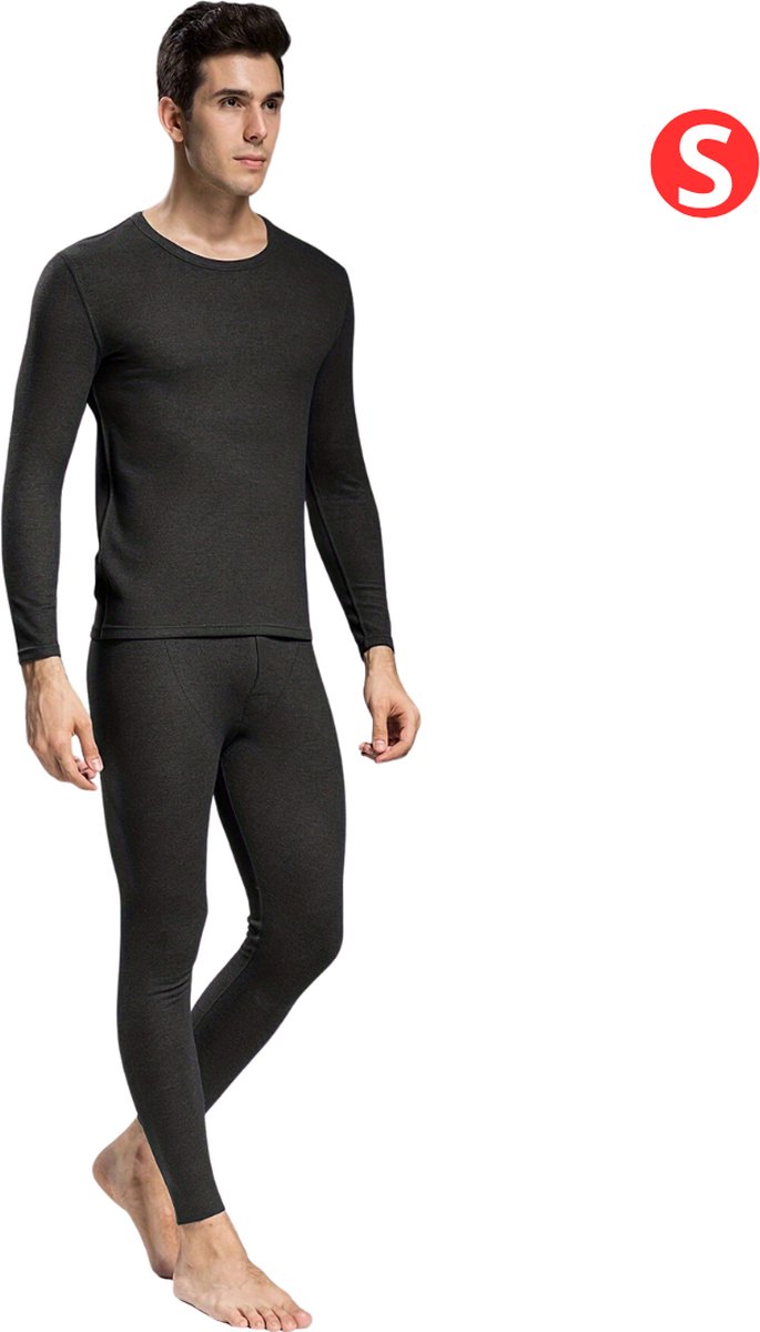 Thermokleding Set – Thermobroek – Thermoshirt – Thermo – Beenverwarmers – Voor Heren – Fleece – Broek + Shirt – Donker Grijs – Maat S