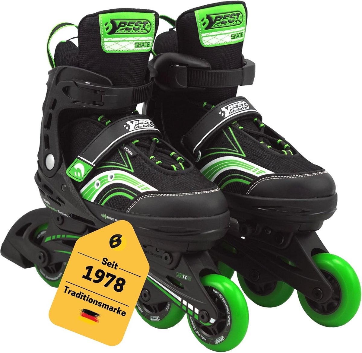 Ontdek het plezier van skeeleren met deze verstelbare inline skates, geschikt voor zowel dames als heren. Deze skates zijn uitgevoerd in een opvallende groen-zwarte kleurcombinatie en bieden een uitstekende pasvorm dankzij de verstelbare maat (38 tot en met 41). De skates zijn uitgerust met hoogwaardige ABEC-7 kogellagers voor een soepele en snelle rit, ideaal voor zowel beginners als gevorderde skaters. Perfect voor recreatief gebruik, sport en beweging buitenshuis. Profiteer nu van de beste prijs en kwaliteit voor urenlang skateplezier!