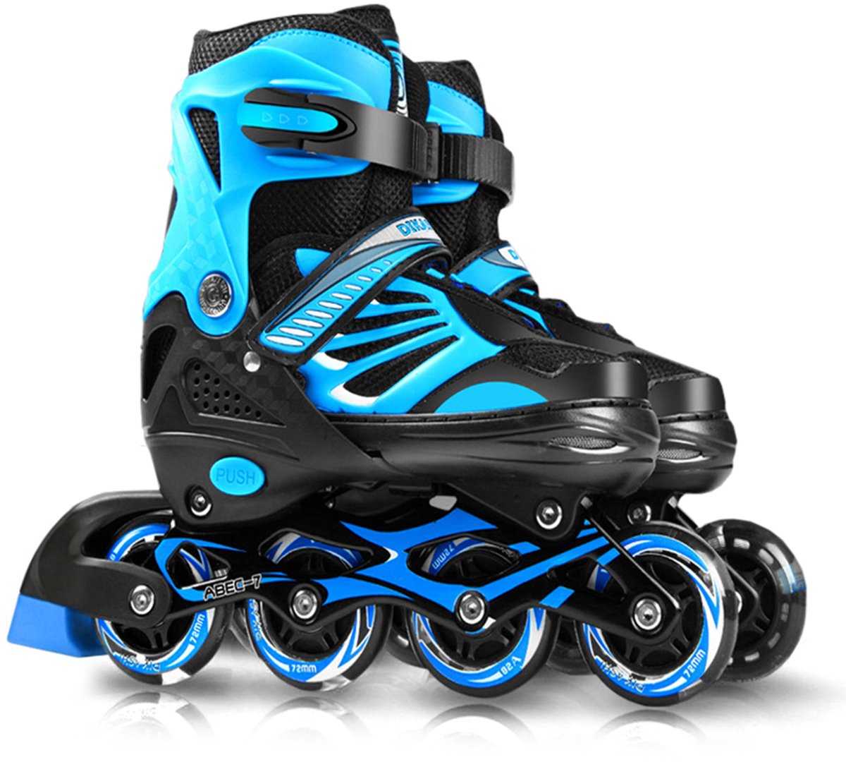 Verstelbare maat – Met een drukknop eenvoudig de maat aanpassen zodat deze skates langer meegaan dan één seizoen.