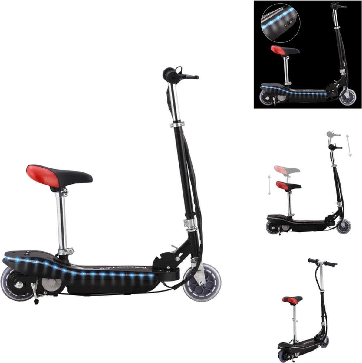 vidaXL Elektrische Step – Elektrische Steppen – Elektrische Steps – Electrische Step – Step elektrisch met LED 120 W zwart