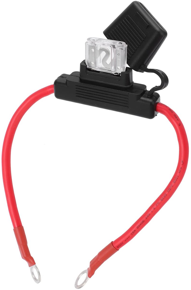 Zekeringhouder van 8 AWG, 30 cm/11,8 inch, rode inline-zekeringhouder met 80A platte zekering, waterdichte circuitbescherming voor 12-24V-voertuigen